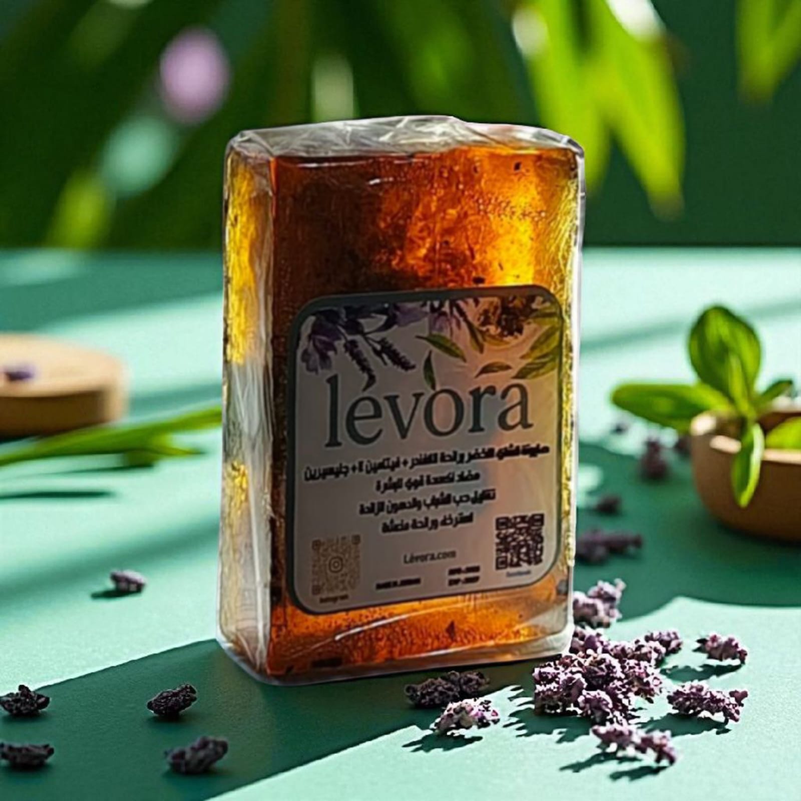 صابون الشاي الأخضر مع اللافندر ينظف البشرة ويهدئها، يحفز الدورة الدموية ويجدد خلايا Eالجلد، غني بفيتامين